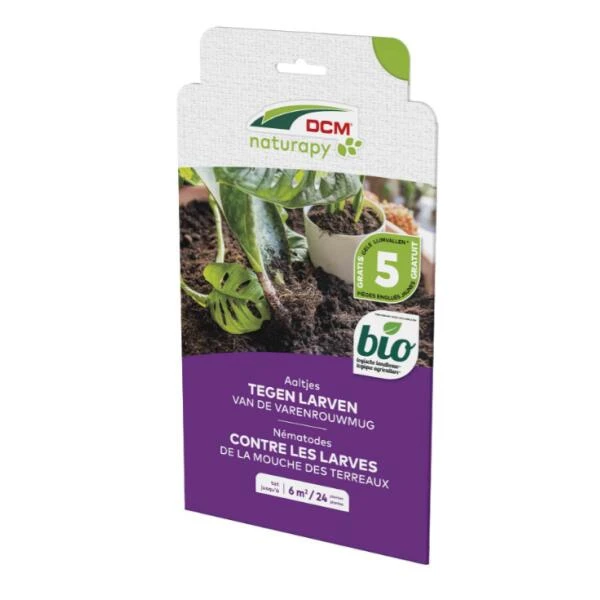 Varenrouwmuggen of rouwvliegen kan je op een natuurlijke manier bestrijden met de aaltjes van DCM. Er worden twee dosissen geleverd waarmee je het probleem in 2 weken tijd efficiënt kunt aanpakken. De microscopische nematoden infecteren en doden de larven.