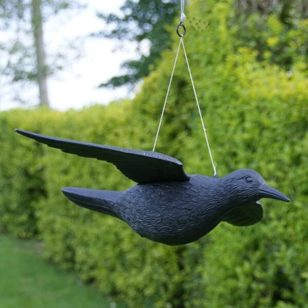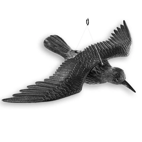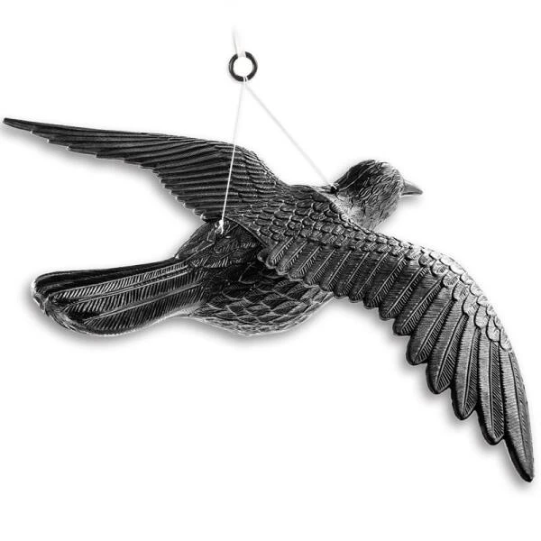 Deze levensgrote duivenverjager, een zwevende kraai zorg ervoor dat duiven uit de buurt blijven.